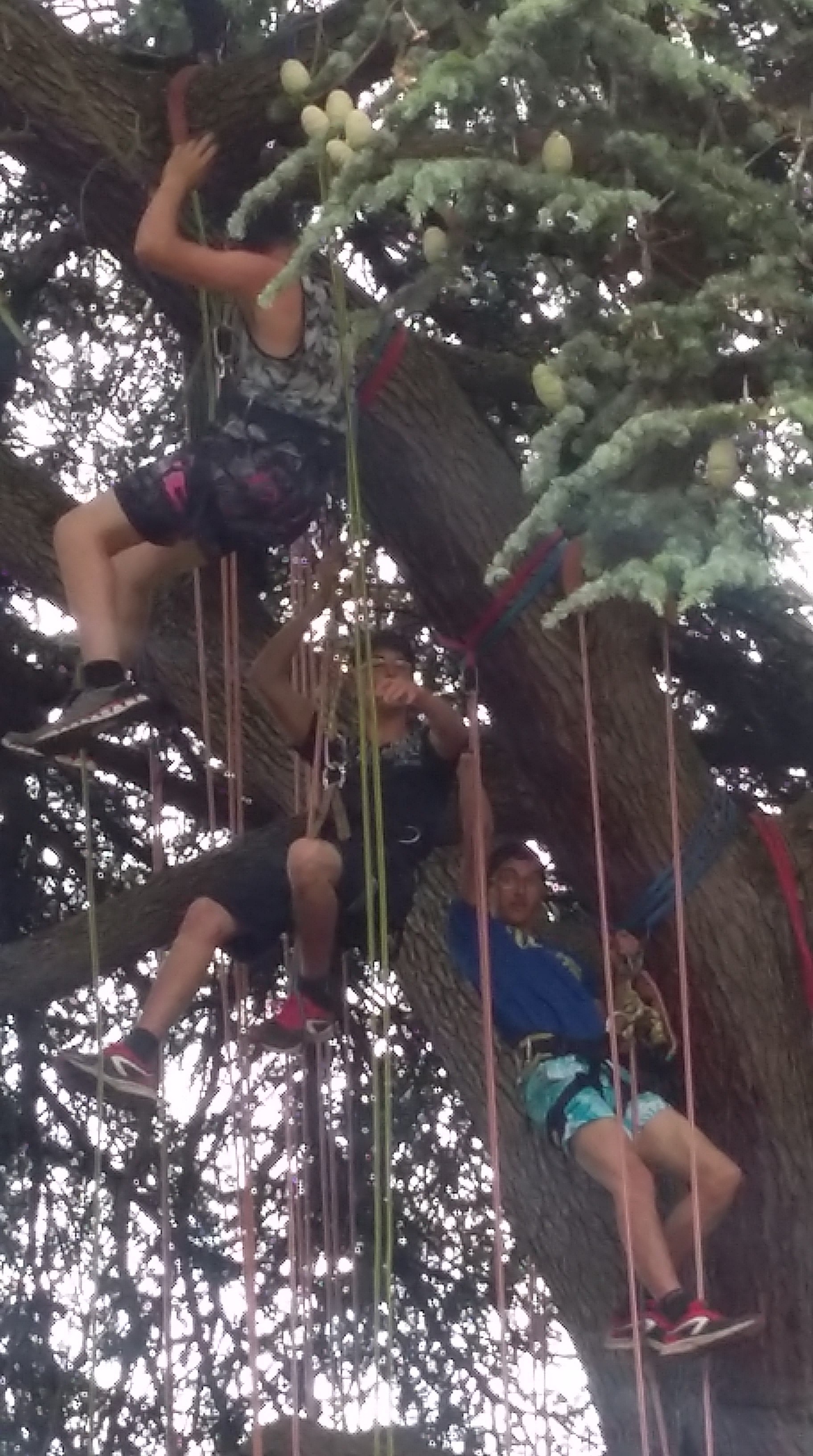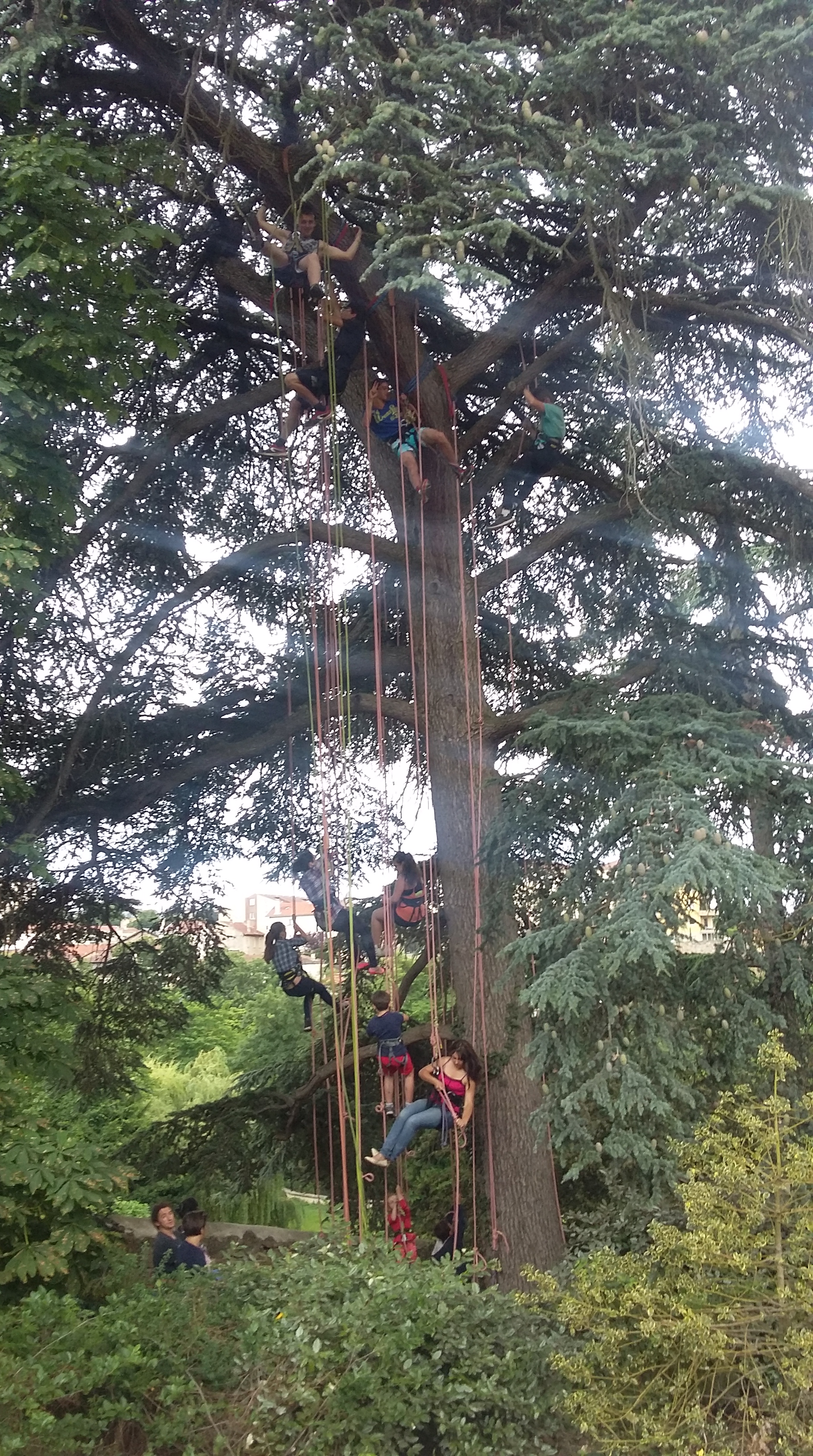 Les arbres sont « équipés » en amont de l’activité et « déséquipés » en fin d’animation. Le site est respecté, il ne nécessite pas d’aménagement spécifique ; mais surtout l’arbre ne subit pas les contraintes pérennes liées à l’installation d’un « parc aventure »